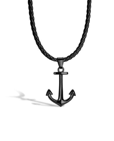 Leather Necklace with Pendant Anchor Black Serasar