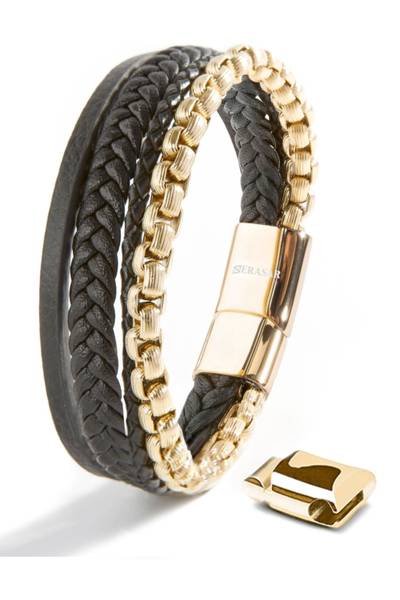 Hero Leather Bracelet Stainless Steel Gold Serasar