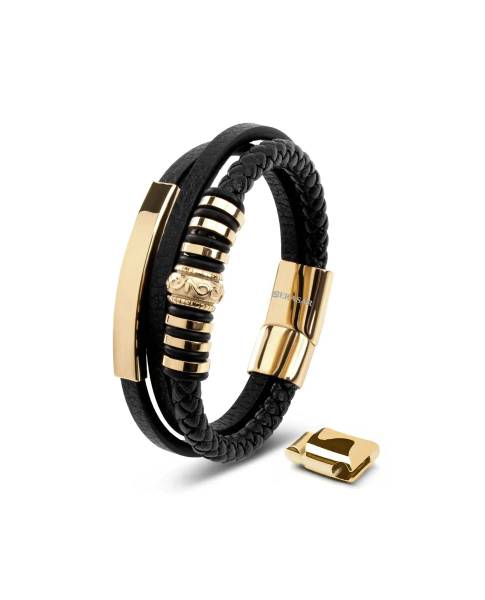 Shine Leather Bracelet Stainless Steel Gold Serasar