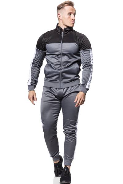 Grey With Black And White Panel Tracksuit Jerone